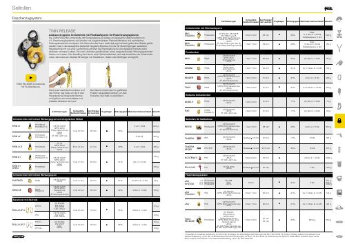 TWIN RELEASE Lösbare doppelte Umlenkrolle mit Rücklaufsperre für Flaschenzugsysteme Die TWIN RELEASE-Umlenkrolle mit Rücklaufsperre ist lösbar und speziell für das Einrichten von 4:1-Flaschenzugsystemen bei Arbeiten mit eingeschränkten Platzverhältnissen und technischen Rettungssituationen konzipiert. Der Klemmnocken kann dank des ergonomisch geformten Hebels gelöst werden. Die in das bewegliche Seitenteil integrierte Bremse und die mit Abschrägungen versehene Hauptlaufrolle mit nur einer Laufrichtung erhöhen die Bremsreibung für eine bessere Kontrolle beim Ablassen schwerer Lasten. Die zwei Laufrollen gewährleisten einen ausgezeichneten Wirkungsgrad beim Heben von Lasten. Das Handling wird durch einen Wirbel erleichtert, der das Ausrichten der Umlenkrolle unter Last sowie ein direktes Einhängen von Karabinern, Seilen oder Schlingen ermöglicht.