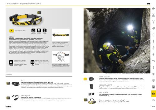 XENA® Lampada frontale potente, ricaricabile, leggera ed equilibrata, dotata della tecnologia CONSTANT LIGHTING. 1400 lumen Destinata ai professionisti delle attività di manutenzione, industria, ispezione e soccorso tecnico, la lampada frontale XENA garantisce un eccellente rapporto peso/potenza (185 grammi / 1400 lumen). La batteria spostata nella parte posteriore le garantisce un trasporto equilibrato e confortevole. Robusta, resiste agli urti e alle cadute. È anche impermeabile all acqua e alla polvere, per adattarsi a diverse condizioni di lavoro. I tre tipi di fasci luminosi e i cinque livelli d illuminazione garantiscono un comfort visivo ottimale in tutte le situazioni. La tecnologia CONSTANT LIGHTING le permette di garantire un intensità d illuminazione stabile nel tempo. Di facile utilizzo, dispone di un pulsante rotante azionabile con i guanti. Pratica, può essere portata sulla testa e si adatta anche su qualsiasi tipo di casco, grazie agli accessori compatibili. Ricaricabile con USB-C, la batteria da 3200 mAh è amovibile e sostituibile.