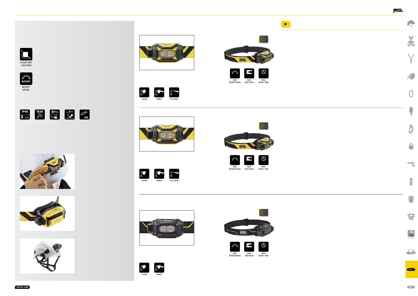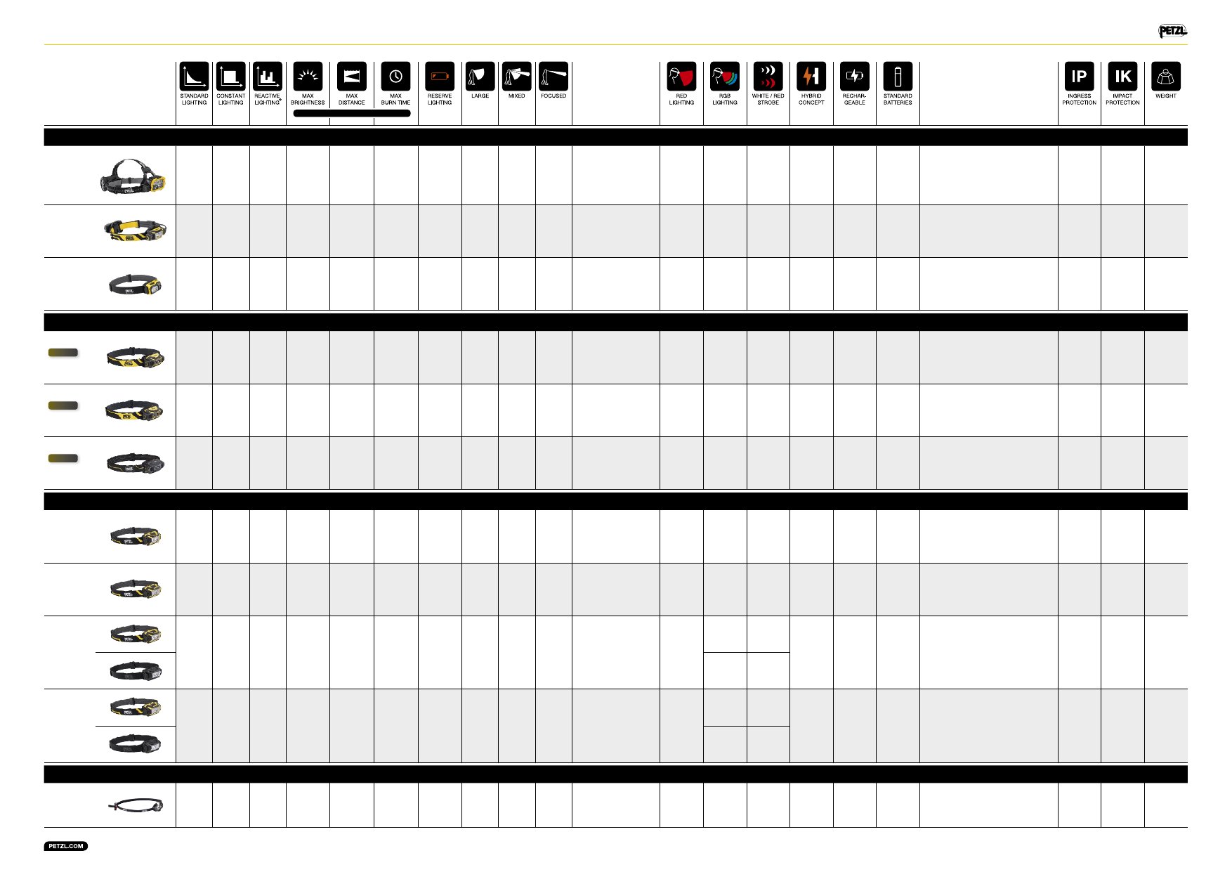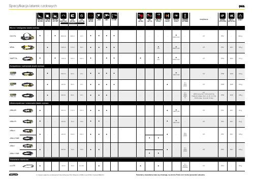 Parametry oświetlenia stale się zmieniają, na stronie Petzl.com można sprawdzić aktualne.